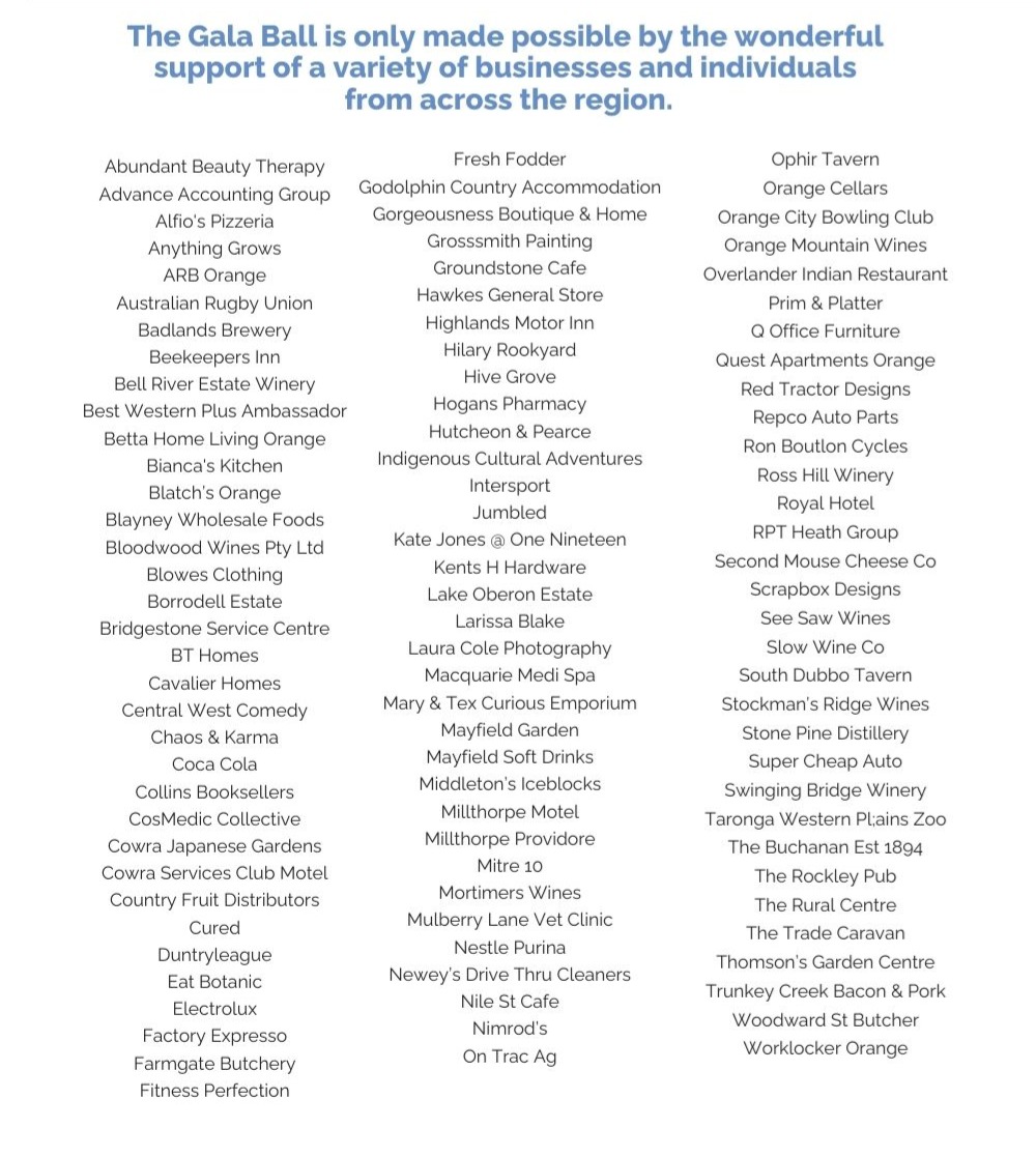 Thank you to our guests, sponsors and event partners for their very generous support for our Ronald McDonald House Central West NSW Gala Ball,in this special 10 year anniversary year, ensures we can continue to be there for rural and regional families with ill or injured children when they need it most.